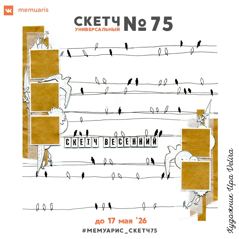 Работы по заданию #мемуарис_скетч75 принимаются в альбоме группы Вконтакте Скрапбукинг=Мемуарис до 23:55 17 мая 2026.