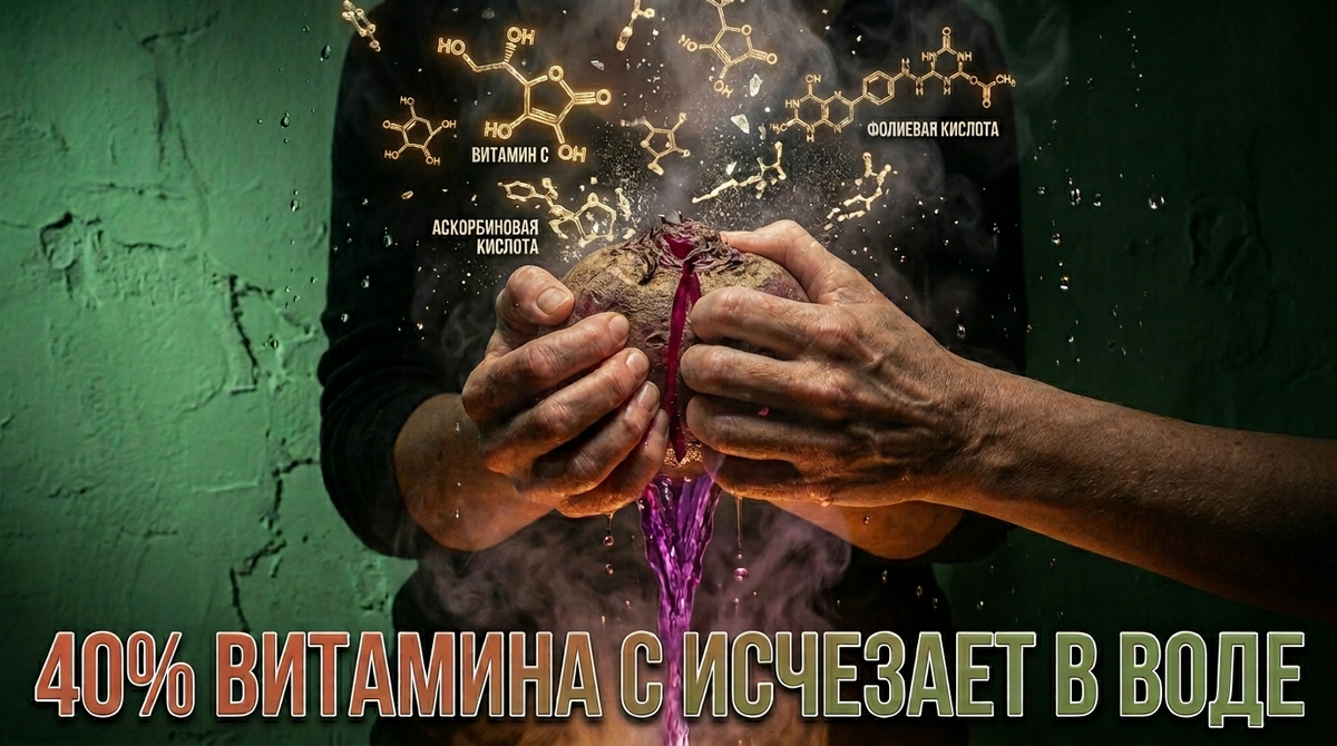 Вот смотрите, бывает такое: варишь свеклу часа полтора, а она на выходе бледная, волокнистая и совсем не сладкая. И вроде бы салат всё равно получился, но что-то не так. Или наоборот - яркая, аппетитная, а на вкус... трава травой. А дело не в сорте и не в "несвежести" корнеплода. Дело в одной привычке, которая убивает и цвет, и вкус, и главное - почти всю пользу. Витамины уходят в воду, как песок сквозь пальцы. И вы даже не замечаете этого. Что мы теряем, когда варим свеклу неправильно Свекла - штука мощная. В ней и витамин С (да-да, в корнеплодах его немало), и фолиевая кислота, и магний с калием. Ещё там есть бетаин - это такая штука, которая помогает печени и метаболизму. И витамин U, о котором мало кто говорит, но он тоже полезный. Но все эти ребята - нежные. При обычной варке в кастрюле свекла теряет до 40% витамина С. И до 30% фолиевой кислоты. Цифры, кстати, из исследований. А беталаины - те самые пигменты, которые дают насыщенный бордовый цвет - разрушаются примерно наполовину.