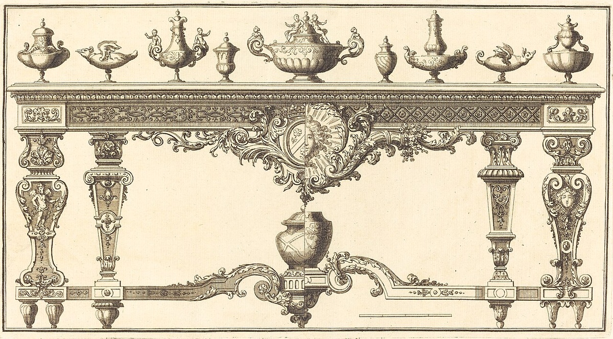 Этот описательный термин используется в отношении расписных и лепных орнаментов, в которых плоские полосы или орнаменты переплетаются и перекрещиваются друг с другом, образуя изящные узоры. Декоративная работа стала важной особенностью в развитии арабесковых форм в сочетании с листьями аканта. Ранние примеры такого использования декоративной работы можно найти в репертуаре Пьера Лепотра (1659–1744), Жака Бойсо (1560–1633) и Шарля Лебрена (1619–1690). На некоторых расписных панелях стен и потолков в Во-ле-Виконте и Галерее Аполлона в Лувре Лебрен использовал переплетающиеся полосы со свитками, которые трансформируются в листья аканта. Новаторское использование декоративной работы Лебреном повлияло на Жана Берена (1640–1711), который гравировал пластины с орнаментами в Галерее Аполлона. Берен продолжил развивать это направление в своих проектах частных зданий в 1680-х и 1690-х годах. Орнамент в виде полос часто встречается в декоративных панелях, штукатурке и садовых партерах того
