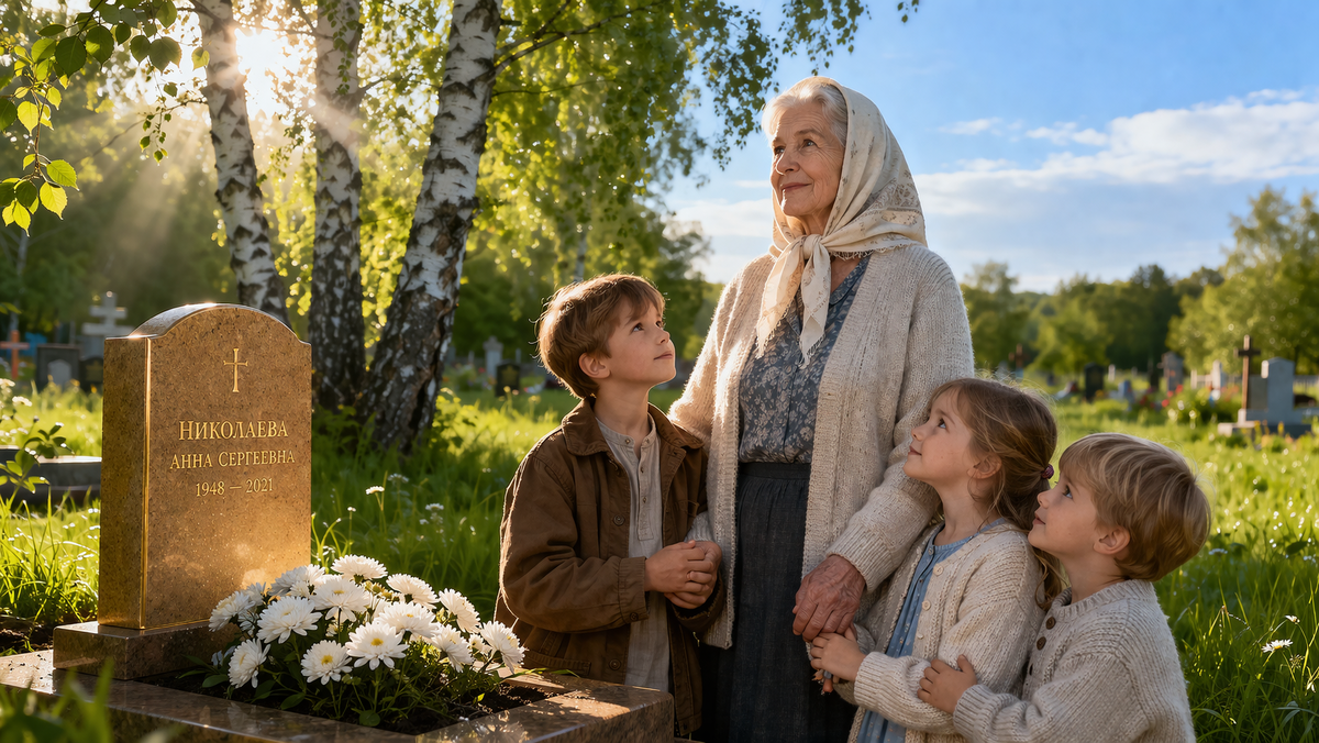 Татьяна Дмитриевна поднялась, стряхнула с ладоней влажную землю и пошла к выходу. Солнце, пробившись сквозь серую пелену облаков, ударило в спину тёплым лучом. Она не обернулась. Она больше не хотела смотреть назад. Только вперед, туда, где её ждали трое голодных, напуганных, но уже начинающих верить в добро внуков. Впервые за долгие годы Татьяна Дмитриевна чувствовала не усталость, а странное, почти забытое спокойствие. Словно чья-то любящая рука, пробившись сквозь толщу времени и горя, наконец погладила её по голове и прошептала: «Ты справилась. Живи».