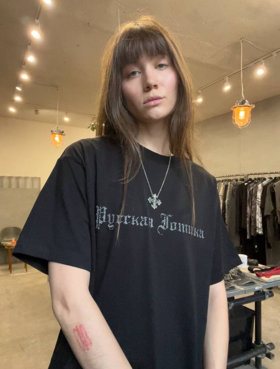 Собираем луки для весенних образов: на верх футболку «Русская готика» или лонгслив «Чёрные бояре» или боди «Дигитоника» или лонгслив «Воин