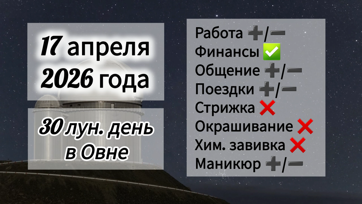 В этот день завершается лунный месяц и с Новолунием начинается новый. В первую половину дня постарайтесь закончить все важные дела. Запускать новые проекты не рекомендуется. Подводите итоги проделанной работы за месяц, раздавайте долги, посвятите это время благодарности и духовному очищению. Это поможет вам вступить в новый лунный месяц со свежими силами. Прощайте людям их ошибки и сами мысленно покайтесь в неблаговидных поступках. Постарайтесь провести первую половину дня в спокойной обстановке и исключить активное общение, оно может оказаться выматывающим при уже имеющемся дефиците энергии. В это время обостряется интуиция, а предчувствия часто оказываются верными. В 14 часов 51 минуту наступит Новолуние и сразу вслед за ним период Луны без курса. Энергия в организме практически на нуле. Физическая сила, настроение и эмоции человека проходят через наименьшую точку активности. Поэтому вторую половину дня лучше провести, не предпринимая активных шагов. Уделите время отдыху. Новолуние