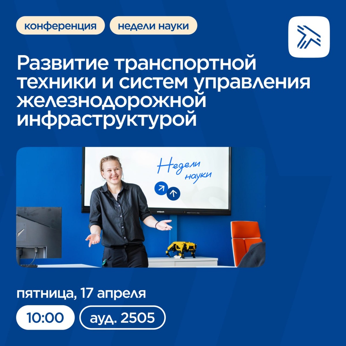 апреля. ➡️ Конференция станет финалом цикла мероприятий «Недели науки» в институте, который объединил научные секции и тематические встречи на кафедрах. На этом этапе свои доклады представят участники, чьи работы получили высокую оценку по итогам кафедральных мероприятий. 📍 Начало конференции — в 10:00 в аудитории 2505. По итогам выступлений лучшие доклады рекомендуют для участия в форуме «Молодёжь транспортной науки» 🦦