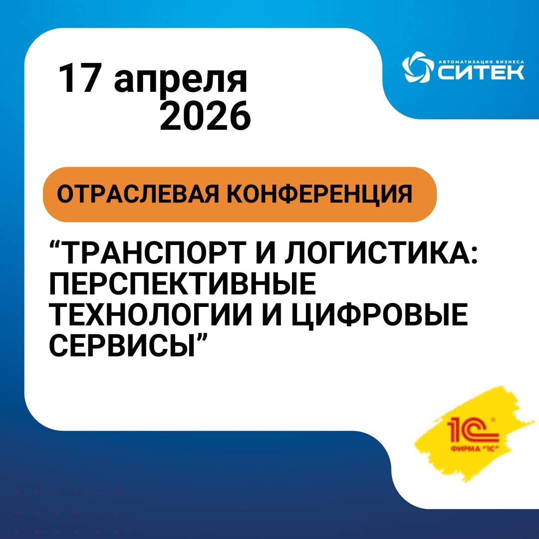17 апреля 2026 года в Москве пройдет однодневная отраслевая конференция от фирмы “1С” при участии ведущих разработчиков решений “1С-Совместно” для транспорта и логистики: “СИТЕК”, “1С-Рарус”, ГК “Астрал”, “ITOB”. Обсудим перспективные технологии, цифровые сервисы и будущее отрасли! Участники от СИТЕК: 🔹 Артур Мухамедшин, директор направления Логистики; 🔹 Иван Бородин, руководитель отдела продаж направления Логистики; А также на конференции выступит Александр Жданов, вице-президент, директор по логистике ГК «Восток-Сервис». 17 апреля 2026 Москва, Radisson Collection Hotel 👉 Регистрация по ссылке Не пропустите! Ждем вас!