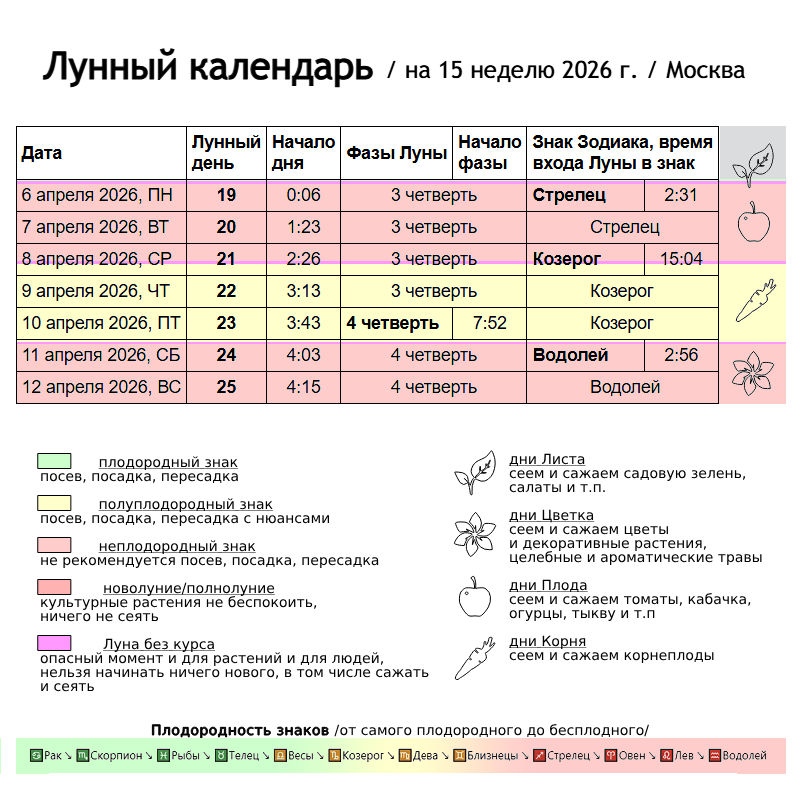 Неделя для работы с растениями, прямо скажем, не очень. Я бы не стала заниматься посевами на этой неделе. Тем более, что у нас идет вторая половина лунного месяца, когда активность смещается к корням. Да, впрочем, я уже всё что хотела посеяла.