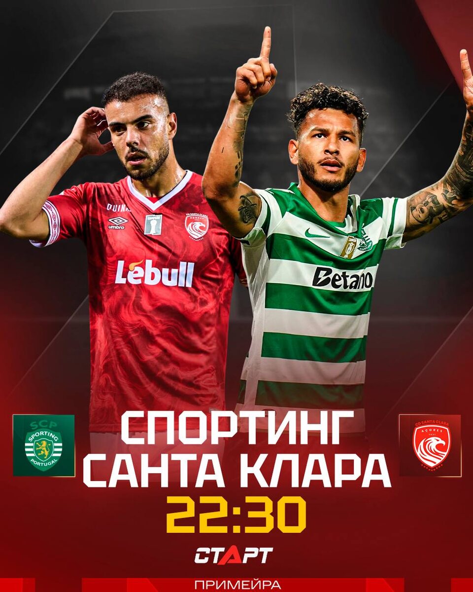 ! Мы так ждали — и это свершилось! Начнем с игры «Спортинга» и «Санта Клары». «Львам» оступаться нельзя, иначе можно лишиться шансов на чемпионство. Так что это будет точно интересный матч 🔥 Подписывайся на ТВ СТАРТ в MAX📲