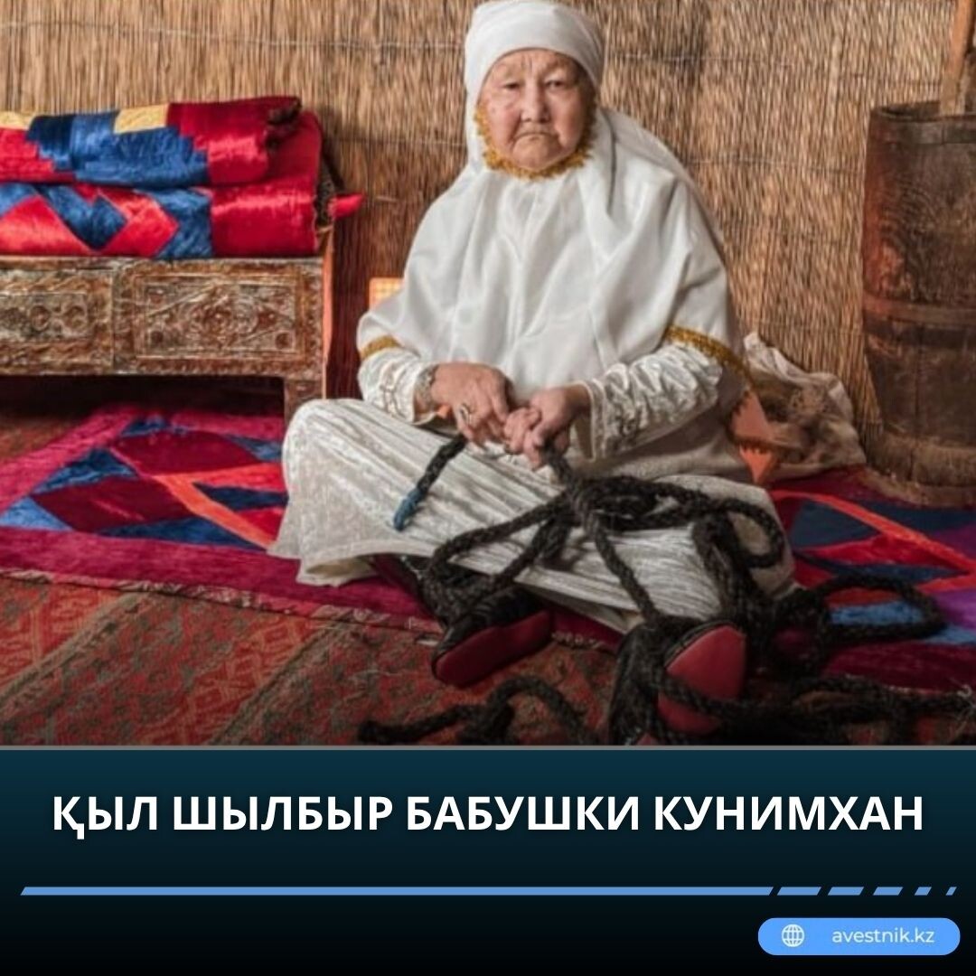 Родилась Кунимхан аже в Иргизском крае. Ее отец Кадыр Алдебергенов в 1937 году стал жертвой репрессий. Рано лишившись отца, Кунимхан выросла под опекой матери Бибижан. Повзрослев, вышла замуж за Сидака Ургенишбаева, с которым долгие годы работала в совхозе «Тоғыз» старшим чабаном. 🎨 Несмотря на напряженный ритм жизни, Кунимхан апай не оставляла рукоделие: ткала узорчатые алаши, плела ши, валяла войлок. В середине прошлого века супруги переехали в город Шалкар. Благодаря бережливости мастерицы в ее доме до сих пор сохранились живые свидетельства прошлого: большая каменная мельница, ступа, плетеные циновки и узорные войлочные изделия. 🐎 Особое внимание привлекает қыл шылбыр — веревка, сплетенная из конского волоса. Она не растягивается, устойчива к влаге и жаре. — Раньше мы часто пряли нити из гривы и хвоста лошади. К конскому волосу добавляли овечью или верблюжью шерсть. Старшие говорили, что в дороге такой аркан оберегает от бед. Если ночью в степи окружить себя им, то змеи и нас