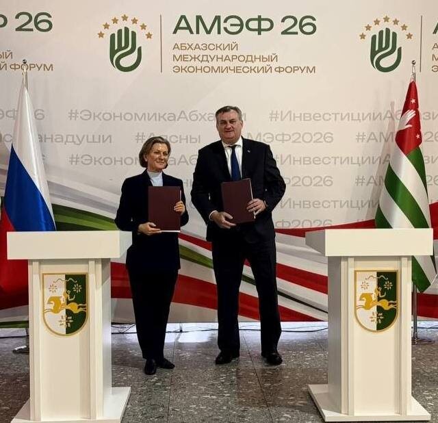 На полях I Абхазского международного экономического форума в Сухуме Министерство здравоохранения Республики Абхазия и Федеральная служба по надзору в сфере защиты прав потребителей и благополучия человека России подписали Меморандум о взаимопонимании. Подписи под документом поставили глава Минздрава Эдуард Бутба и руководитель Роспотребнадзора Анна Попова. Стороны также подписали план совместных действий по укреплению лабораторного потенциала Санитарно-эпидемиологической службы Минздрава Абхазии. Особое внимание будет уделено вопросам обеспечения контроля качества и безопасности пищевой продукции. Подписание меморандума стало важным этапом в развитии двусторонних отношений и подтвердило стремление сторон к повышению уровня охраны здоровья населения. Апсныпресс | Instagram Facebook | Дзен ⚠️