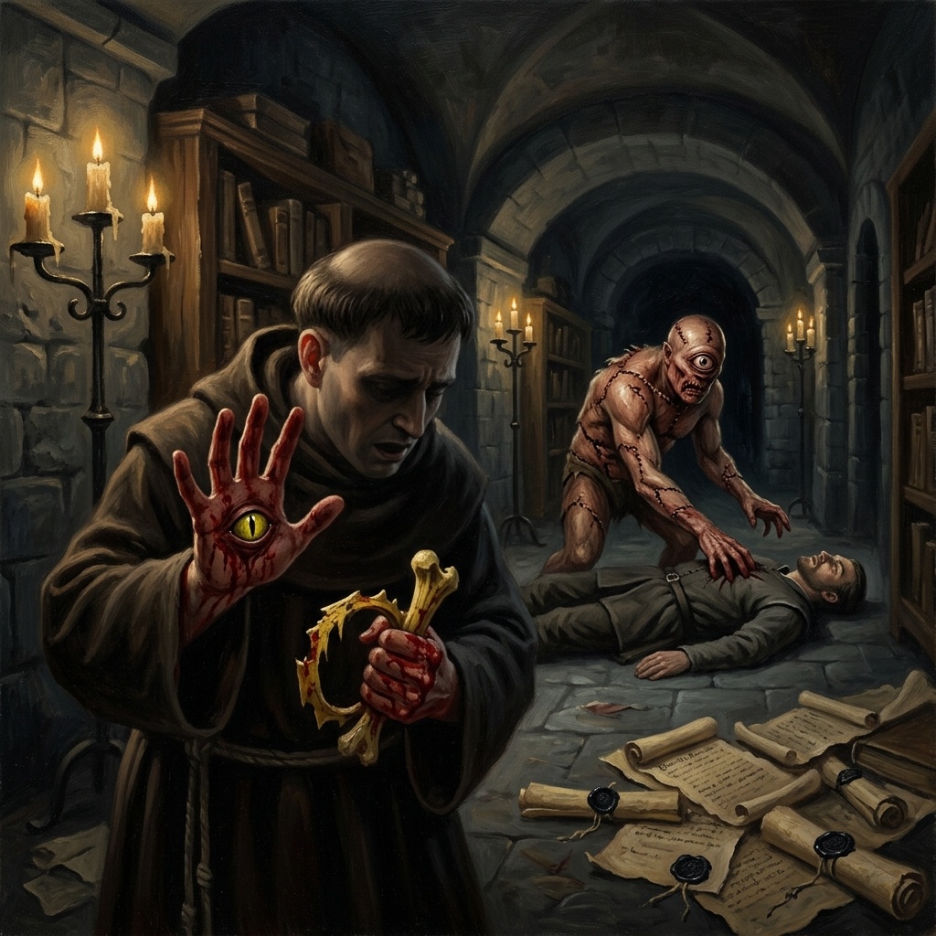 Секретный архив опечатали. Но спустя год молодой монах, перебирая старые свитки, нашёл один — без печати, без названия, пахнущий сырым мясом.