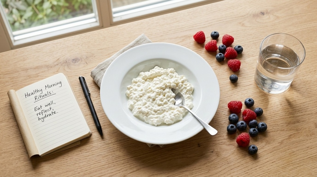 И ещё момент: творог не панацея. Если кожа сухая и тусклая, а в рационе нет овощей, нет жиров и нет воды, одна пачка творога ситуацию не спасёт. Он работает как часть нормального питания, не вместо него.