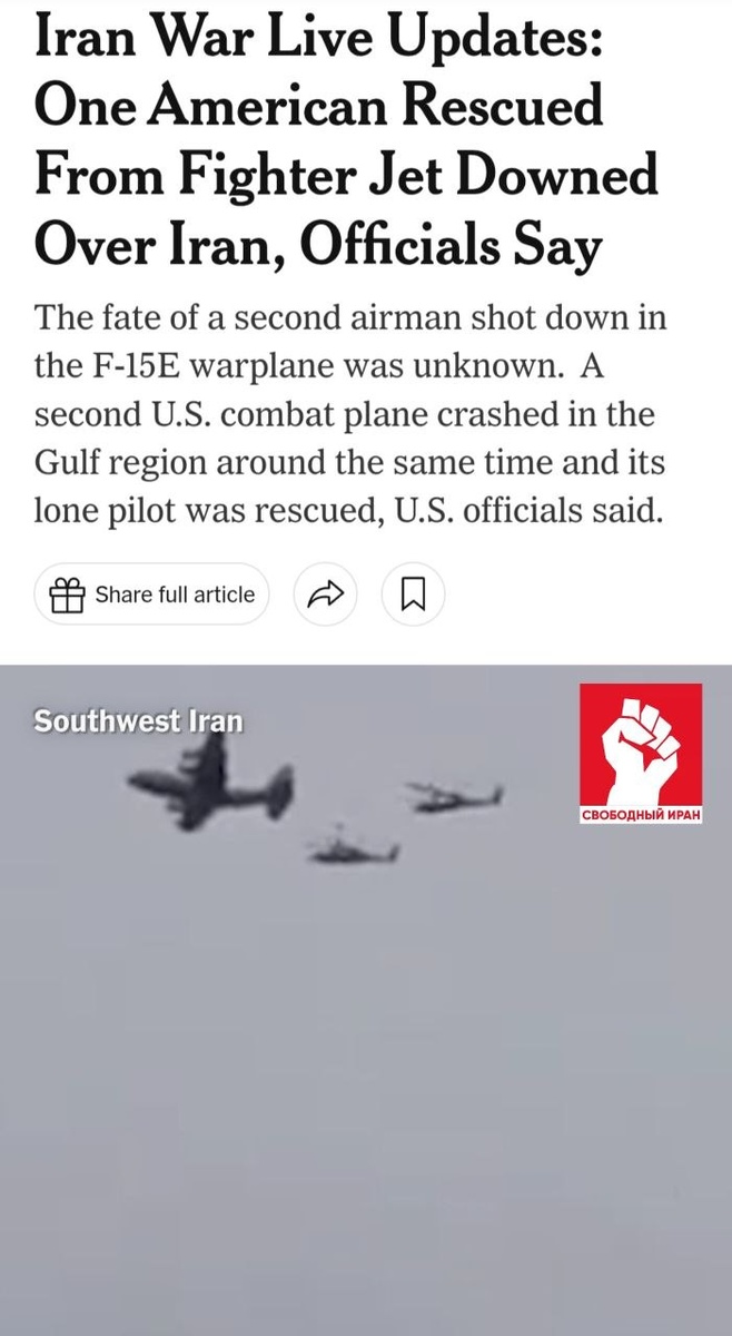✈️🔥 Американский A-10 разбился неподалеку от Ормузского пролива. По данным The New York Times, это уже второй потерянный США самолет за сутки. Подпишитесь на канал