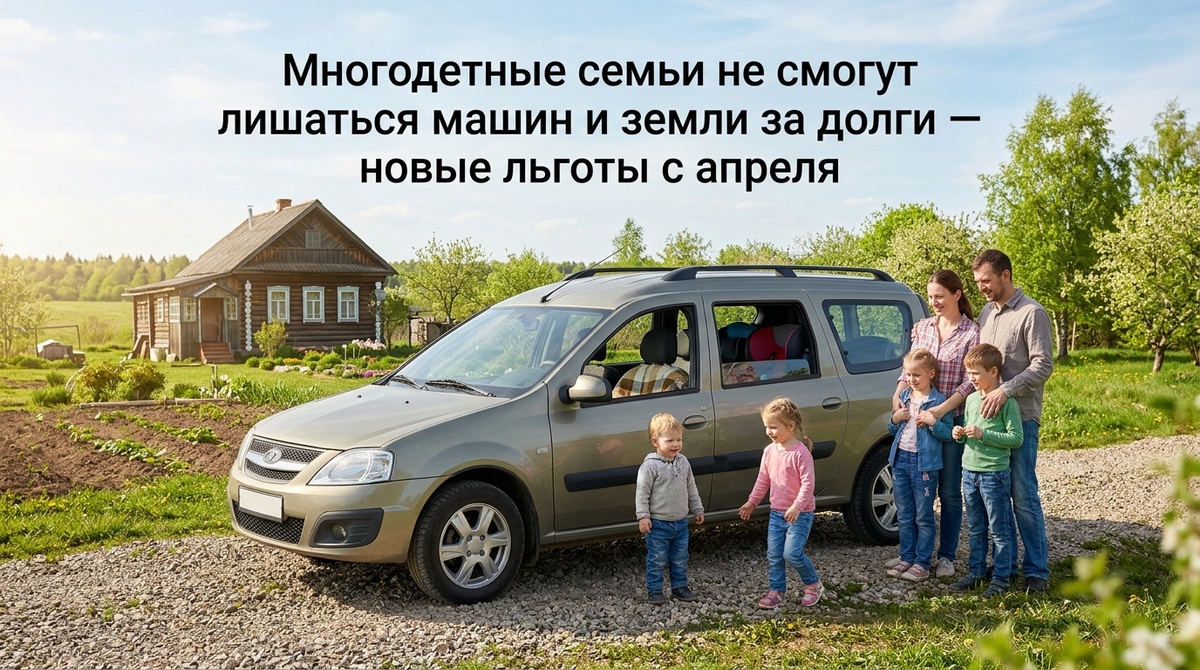 На первый взгляд новость звучит почти как социальная сенсация: с апреля у многодетных больше не смогут забрать за долги машину и землю. Для семей, которые и так живут в режиме постоянных расходов, это действительно важное изменение. Но, как обычно бывает с громкими юридическими новостями, всё упирается в детали. Потому что защищают не любую машину и не любую землю, а только вполне конкретное имущество. (КонсультантПлюс)