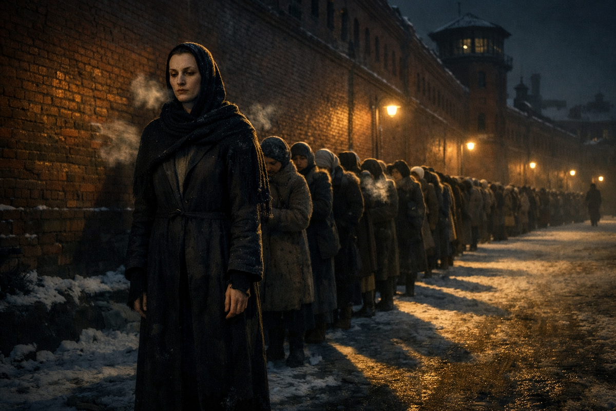 Спина прямая, лицо — как маска. Руки — красные от мороза, пальцы стиснуты на узелке. Иногда передачу принимали. Иногда — нет. Иногда не говорили ничего, и это было страшнее приговора.