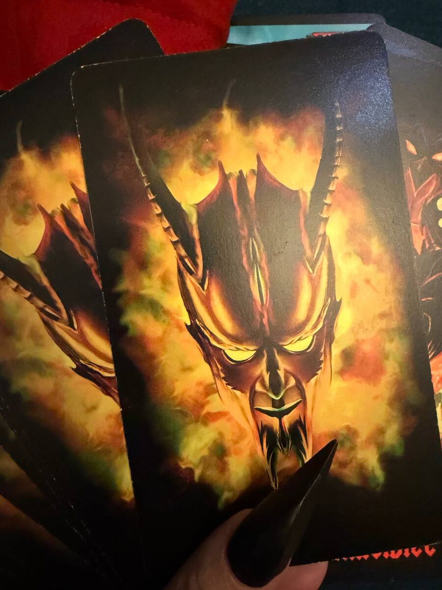 У таро Люцифера светятся печать и сигила на каждой карте, и рубашка тоже)