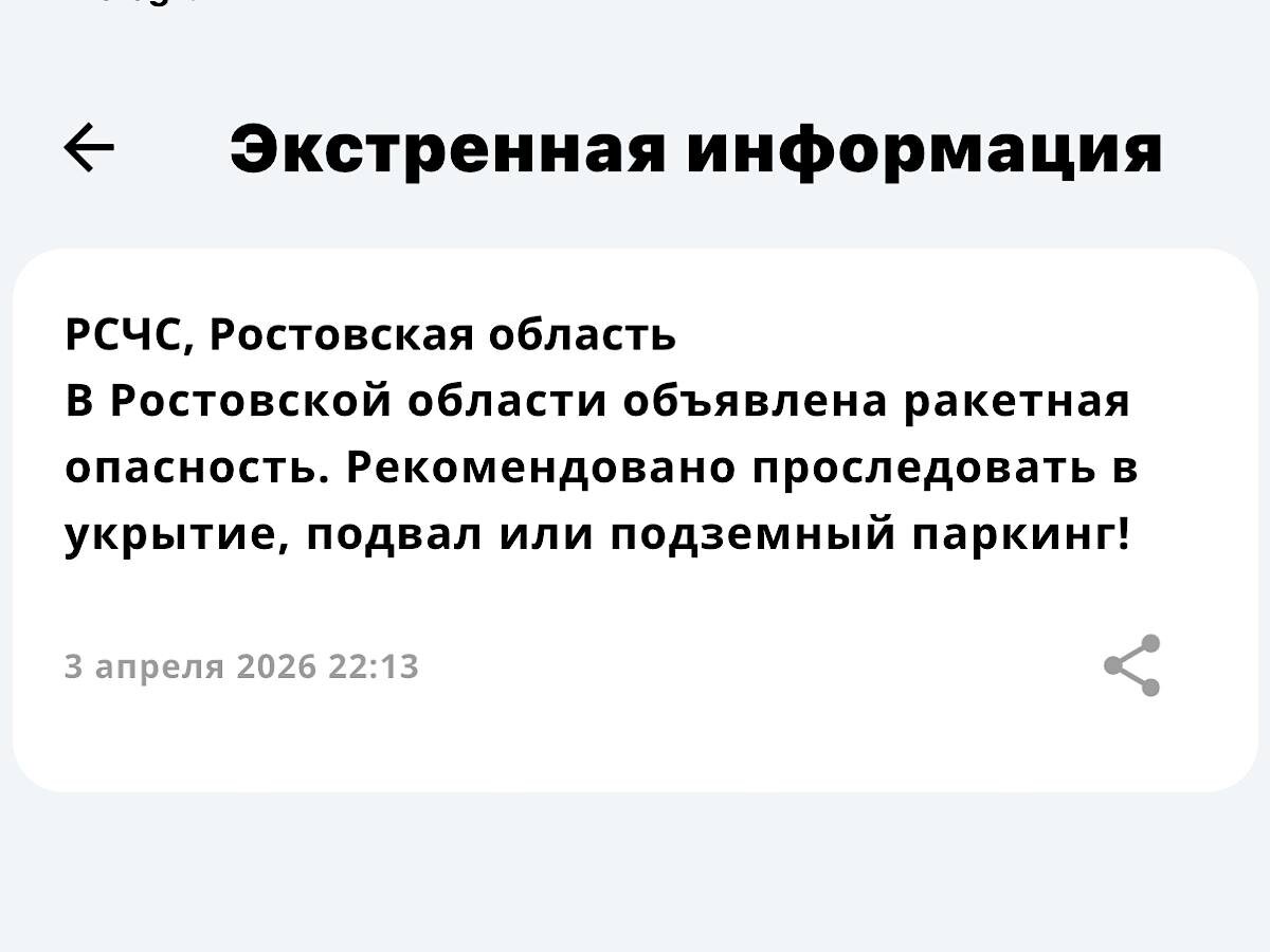Ракетная опасность объявлена в Ростовской области