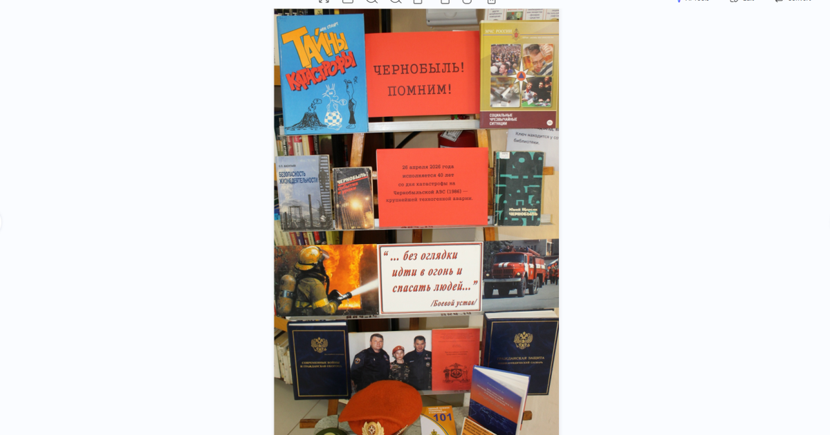 В Коминтерновском районе в библиотеке №4 имени Егора Исаева к 40-летию аварии на Чернобыльской АЭС подготовлена книжно - иллюстративная выставка «Чернобыль». Она призвана сохранить память о тяжелейших событиях прошлого, отдать дань уважения ликвидаторам, которые ценой своего здоровья и жизней спасали мир, а также напомнить насколько этот мир хрупок. На выставке представлены книги и статьи, в которых отражены события на ЧАЭС с первых дней аварии до полной остановки работы электростанции, современное состояние Чернобыльской зоны отчуждения, а также материалы о безопасности ядерной энергетики в современном мире.
