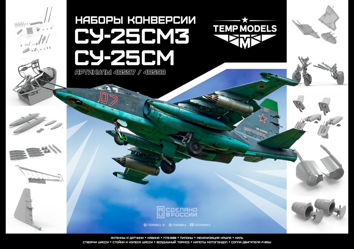 Тemp Мodels из Москвы выпустила на 3D-принтере конверсионные наборы для постройки модели Су-25СМ/СМ3 в масштабе 1/48 на базе модели Су-25 от "Звезды".