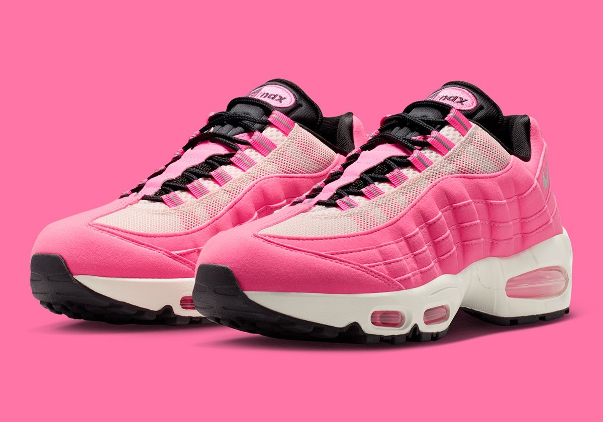 Nike представили новую расцветку Air Max 95 «Pink Glow» для лета 2026 года. Модель выполнена в розовых тонах: верх из замши Pink Glow дополнен сетчатой вставкой Pearl Pink на промежуточной подошве. Для контраста задник и подошва выполнены в Off Noir, а петли для шнуровки — в отражающем Metallic Silver. Воздушная подушка и центральная часть подошвы выполнены в тон основному цвету. Кроссовки будут доступны только в мужской размерной сетке. Подробности релиза уточняются.