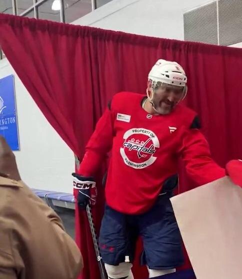 Александр Овечкин во время тренировки обменял хоккейную шайбу на пачку чипсов