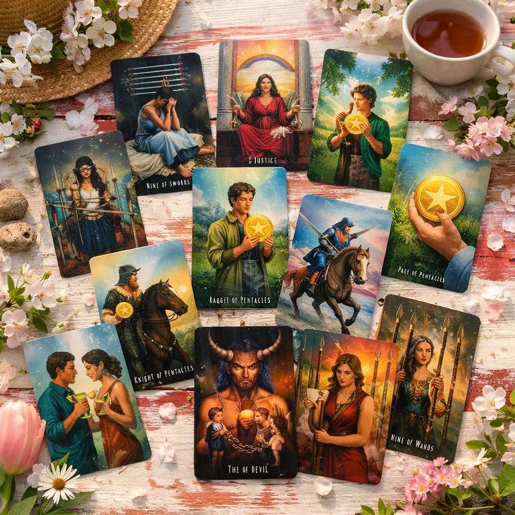 Идёт сильный финансовый и жизненный прорыв. Паж пентаклей и дальнейшие карты показывают: там, где вы долго не могли пробиться, где была стена, где были отказы — начинается движение. Это может быть работа, деньги, документы, бизнес или какое-то дело, в которое вы вложились. И сейчас ситуация меняется. Как будто пространство перестраивается, и вам открывают доступ туда, куда раньше было невозможно попасть. Это не случайный шанс — это результат вашего пути.