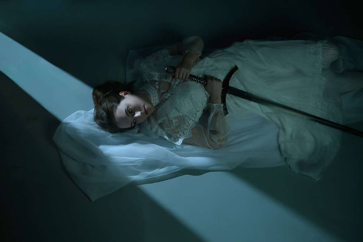 Я обожаю Шекспира и его экранизации. Мне всегда хотелось сделать фотосессию, вдохновленную его творчеством, где использовал релику средневекового меча. Время от времени я возвращаюсь к этой идее и снимаю разные серии. Не все мои планы воплощаются, но продолжаю двигаться вперед. Лучше снимать, чем не снимать вообще. Я снял эту серию с Юлией после просмотра фильма «Хамнет» режиссера Хлои Чжао. Картина рассказывает историю великого британского писателя через призму жизни его жены. Хотя в фильме нет прямых параллелей с средневековыми мотивами произведений, он напомнил мне о «Макбете» и леди Макбет. Тогда я решил создать историю о ней. Понять причину, почему мы не могли снять на натуре со средневековыми замками и шотландскими пейзажами, было несложно. Ведь российская зима выглядит иначе. Мы решили проявить смекалку и выбрали минимализм, чтобы сосредоточить всё внимание на героине. Юля, модель, нашла классное винтажное платье. Я покопался у себя и нашел реплику средневекового меча и корону.