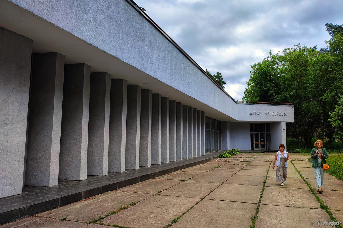 Подмосковный наукоград Протвино возник как рабочий поселок в 1960 году. Он построен посреди леса и интегрирован в природу. Градообразующим предприятием является Институт физики высоких энергий. Одно время в Протвино жили и работали французы, был совместный проект. На фото легендарный Дом ученых, он построен как комплекс по обслуживанию иностранных специалистов. Внутри до сих пор сохранилась советская атмосфера. Только попасть туда очень сложно. Мне однажды довелось. Вот, что написано в Википедии: Дом ученых города Протвино - учреждение культуры Института физики высоких энергий (ИФВЭ) в Протвине, построенный в 1972 году. Здание спроектировано советским скульптором Львом Лилье. Комплекс состоит из концертного зала, кафе, бара, каминного зала. Здание было награждено дипломом Госстроя СССР. Закрыт навсегда. Последняя фраза, якобы взята из поста блогера Николая Пегасова в Livejournal. То ли он ошибся, но потом исправил, то ли редакторы Википедии что-то недопоняли. Фраза звучит слишком радик