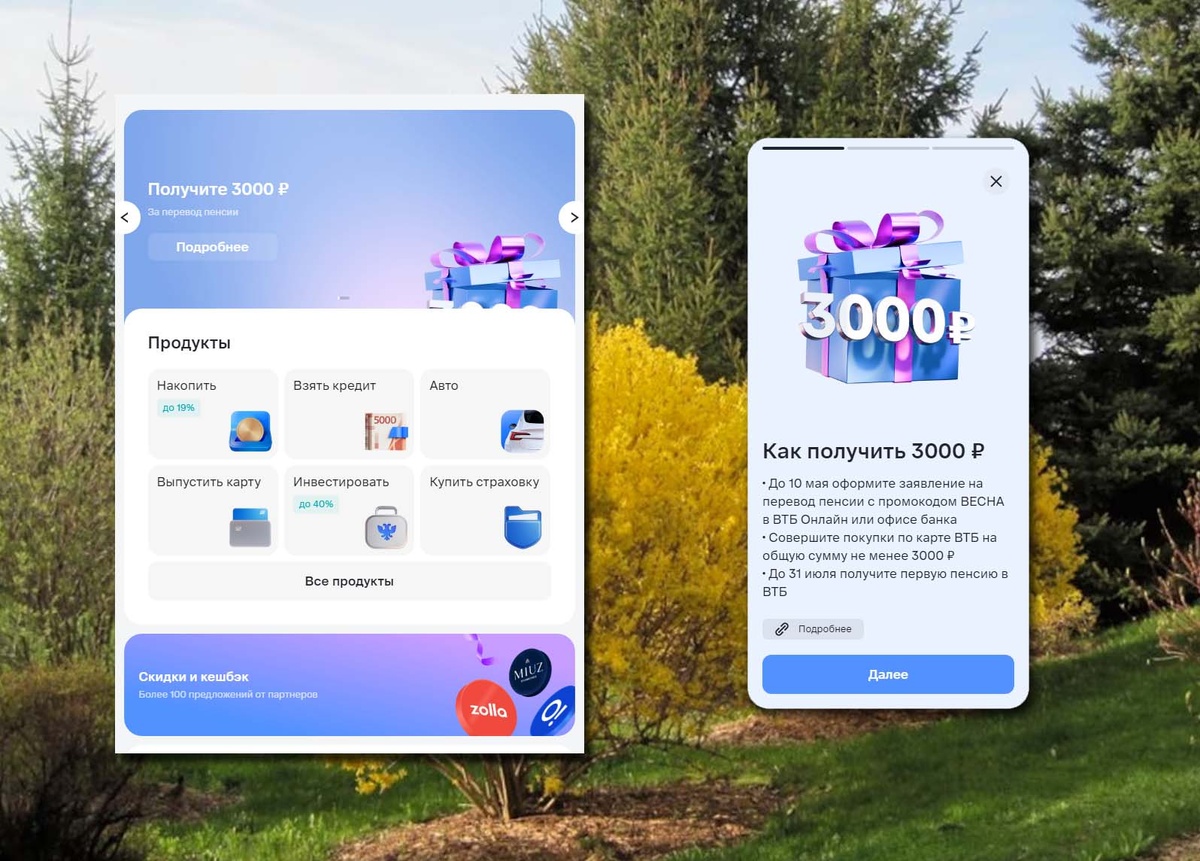 Уже появилась традиция, что в апреле банк ВТБ раздает деньги новым клиентам, кто переводит пенсию. Несколько лет назад это было 2 тысячи рублей, а последнее время – 3000. Уже надеялся, что будет больше, но нет. Так что напишу примерно то же самое, что и год назад, хотя и с некоторыми дополнениями, потому что во-первых, отличия все-таки есть, во-вторых, кое-что дополнительно прокомментирую. Нужно зайти в личный кабинет, зайти в раздел продукты и нажать на кнопку, где заметите акцию. Если у вас пенсионный возраст и вы просто войдете в личный кабинет, то предложение скорее всего выскочит раньше, чем вы успеете что-то сделать. Если у вас нет карты ВТБ, а вы хотите получить 3000 рублей именно от ВТБ, то можете заказать дебетовую карту и получить 1000 рублей, а потом подать заявку на перевод пенсии. Напоминаю, что ссылки с бонусами у нас в этой статье. Кстати, не только ВТБ раздает деньги за перевод пенсии. Так же существует ссылка «Приведи друга», но по ней дают только 1000 рублей, зато кр