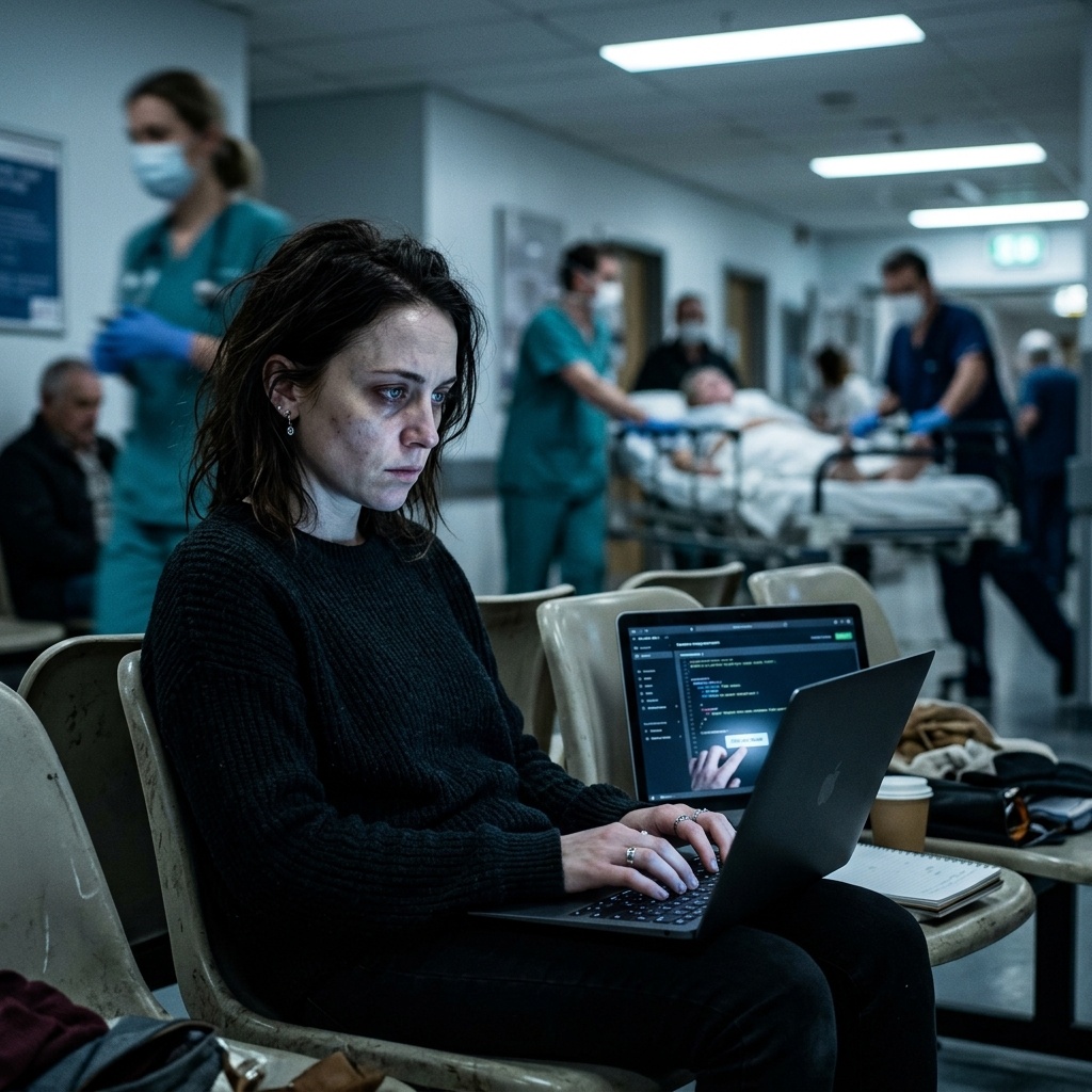 Я сидела в приемном покое. Мимо провозили каталки. У меня темнело в глазах от усталости.