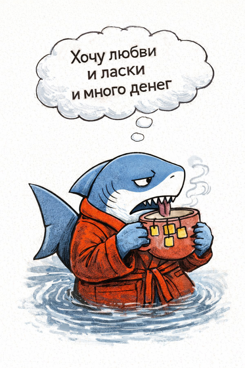 Это как сытая акула в океане. Не мечется. Не ищет. Не выживает. Просто есть.