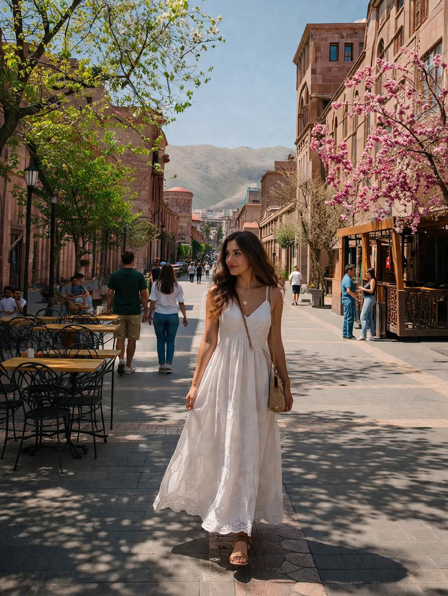 Армения вообще не пытается казаться великой. Она просто живёт. Шумно, вкусно, местами хаотично, местами очень душевно. Вместо золота — пыльные улицы. Вместо пафоса — пластиковые стулья у кафе. Вместо показной древности — настоящая жизнь рядом с храмами, которым тысяча лет.