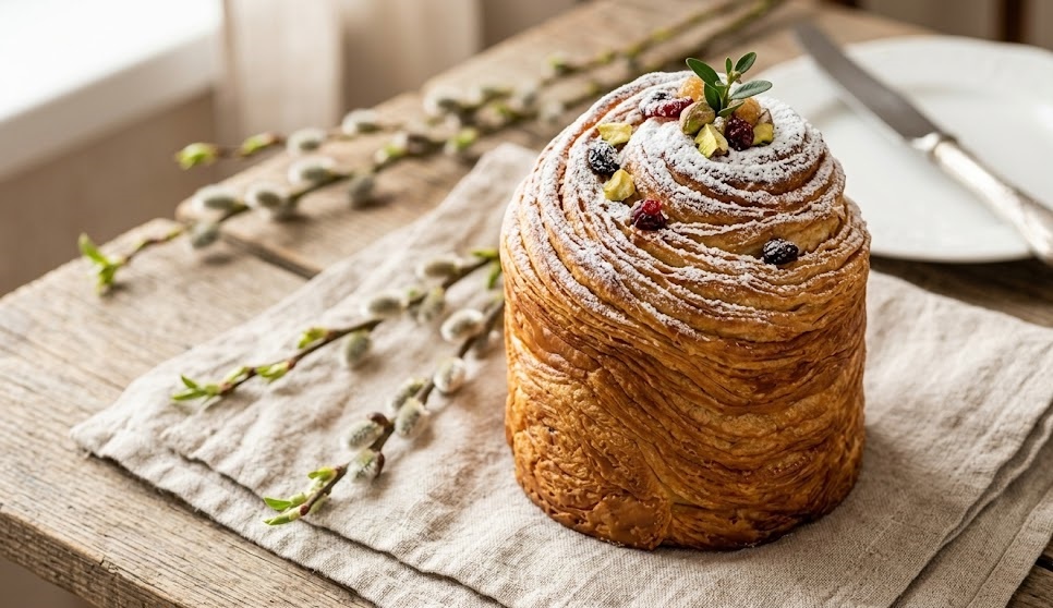 Если вы ищете рецепт, который превратит пасхальный стол в обложку журнала, остановитесь здесь. Краффин — это гибрид слоеного круассана и нашего классического кулича. Многослойное кружево теста, пропитанное сливочным маслом и ароматом корицы, буквально рассыпается в руках. Коротко о главном: