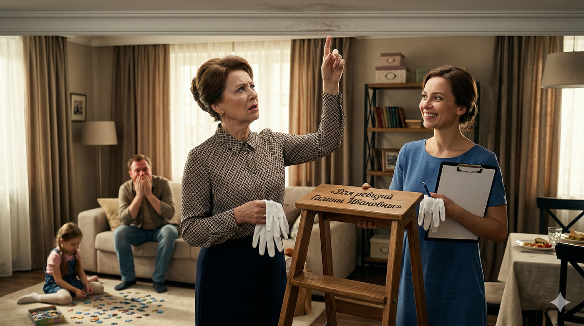 — Вот! Специально для вас купила! Чистейший хлопок! Теперь вы можете спокойно проверять пыль на самых высоких шкафах, и ваши руки останутся идеальными! А на стремянку вставайте, она очень устойчивая, я проверяла. И вот, смотрите, — я потрясла перед ее носом планшетом с чистым листом бумаги и ручкой. — Я вам даже журнал обхода завела! Вы, пожалуйста, вставайте, проверяйте, и прямо сюда записывайте: карниз в гостиной — слой пыли 2 миллиметра. Верх кухонного шкафа — жирный налет. Я этот листок повешу на холодильник и буду каждый день сверяться с вашими замечаниями, чтобы исправиться! Ну же, Галина Ивановна, прошу вас, приступайте! Карниз вас ждет!
