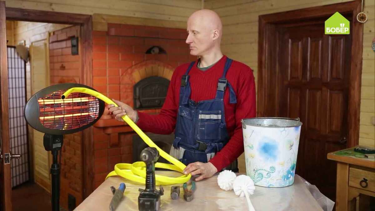 В конце отопительного сезона нужно привести в порядок внутреннее устройство печи: сажа и зола уменьшают тепловую работу печи, а также снижают тягу и мешают дыму пройти. Но самое опасное, что эти вещества могут загореться и привести к пожару. Нагрейте поливочный шланг (температура не должна подниматься выше 200 °С), чтобы его легко можно было расправить. Слегка растяните шланг, выровняйте и опустите в холодную воду, чтобы зафиксировать форму. Нагрейте один конец поливочного шланга и сразу закрепите ёршик, установив его как можно дальше. Для большей надёжности прикрепите шланг к ёршику при помощи самореза, чтобы ёршик не отделился от шланга во время работы и не остался в дымоходе. Такое нехитрое устройство поможет прочистить в печи даже труднодоступные каналы. Ёршик поможет очистить и дымоходы, особенно если они имеют небольшой диаметр. Наденьте на него молоток, который будет являться грузом и толкать ёрш вниз во время работы. Возьмите стальной тросик или верёвку и надёжно прикрепите его