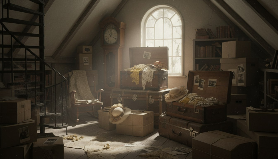 В доме у бабушки с дедушкой всегда пахло печеньем, старыми книгами и тишиной. Но больше всего Лена и Максим любили дождливые дни, когда можно было исследовать таинственный чердак. Он был полон загадок: сундуки с пожелтевшими кружевами, чемоданы, из которых выглядывали шляпы с перьями, и картонные коробки, хранящие истории целой семьи. В тот день дождь стучал по крыше, как нетерпеливые пальцы. «Давай найдём что-нибудь особенное!» - предложила Лена. Они забрались по скрипучей лестнице, и пыль, поднятая их шагами, закружилась в луче фонарика. Среди ватных зайцев с пуговичными глазами, стопок открыток с поздравительными стихами и старых журналов их взгляд упал на небольшую коробку. Она была не похожа на другие - не картонная, а деревянная, цвета выгоревшего неба, и на крышке кто-то вырезал едва заметный узор: переплетение капель и веточек. Коробка не была заперта. Максим осторожно приподнял крышку. И тогда случилось чудо. Из коробки вырвался не свет, не дым, а… аромат. Но такой живой и сил