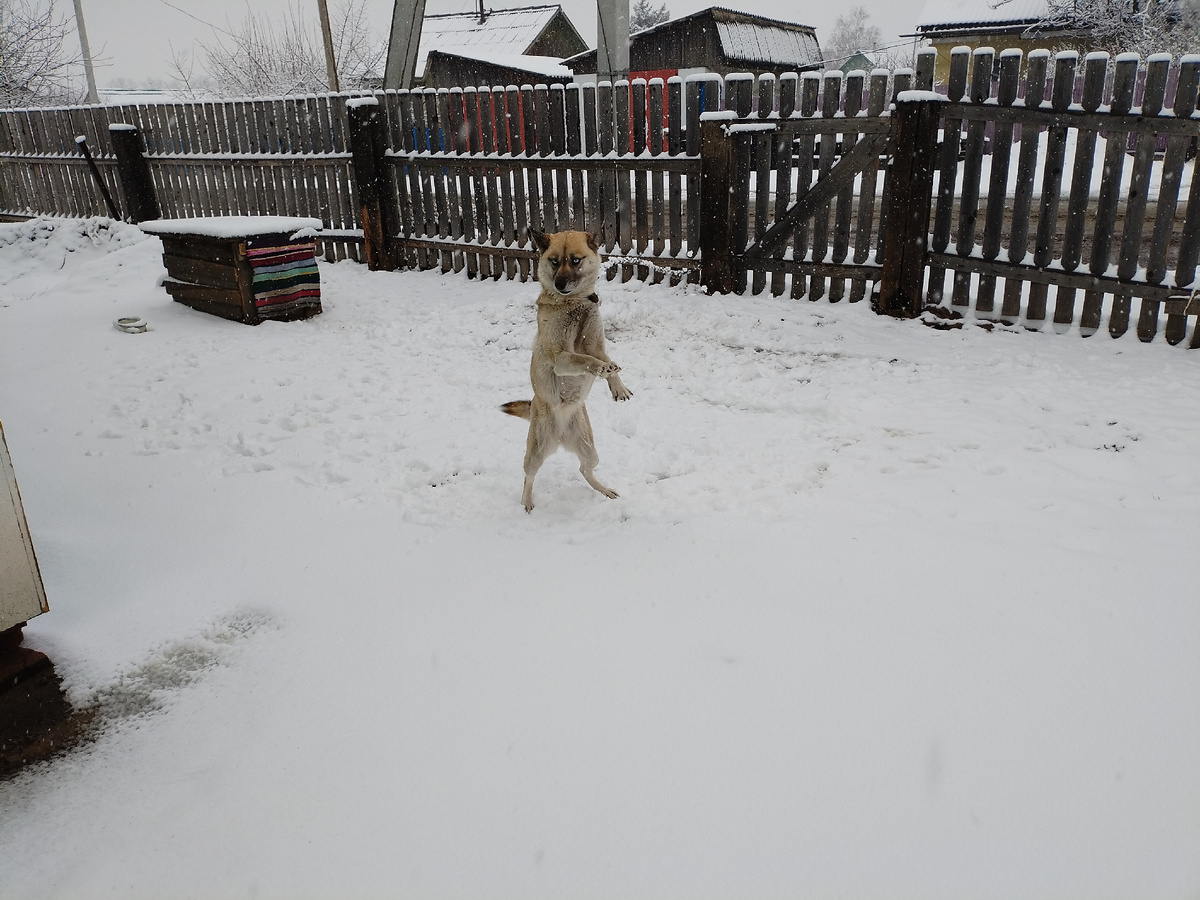 А как наша Жужа рада снегу 😁 пританцовывает от радости.