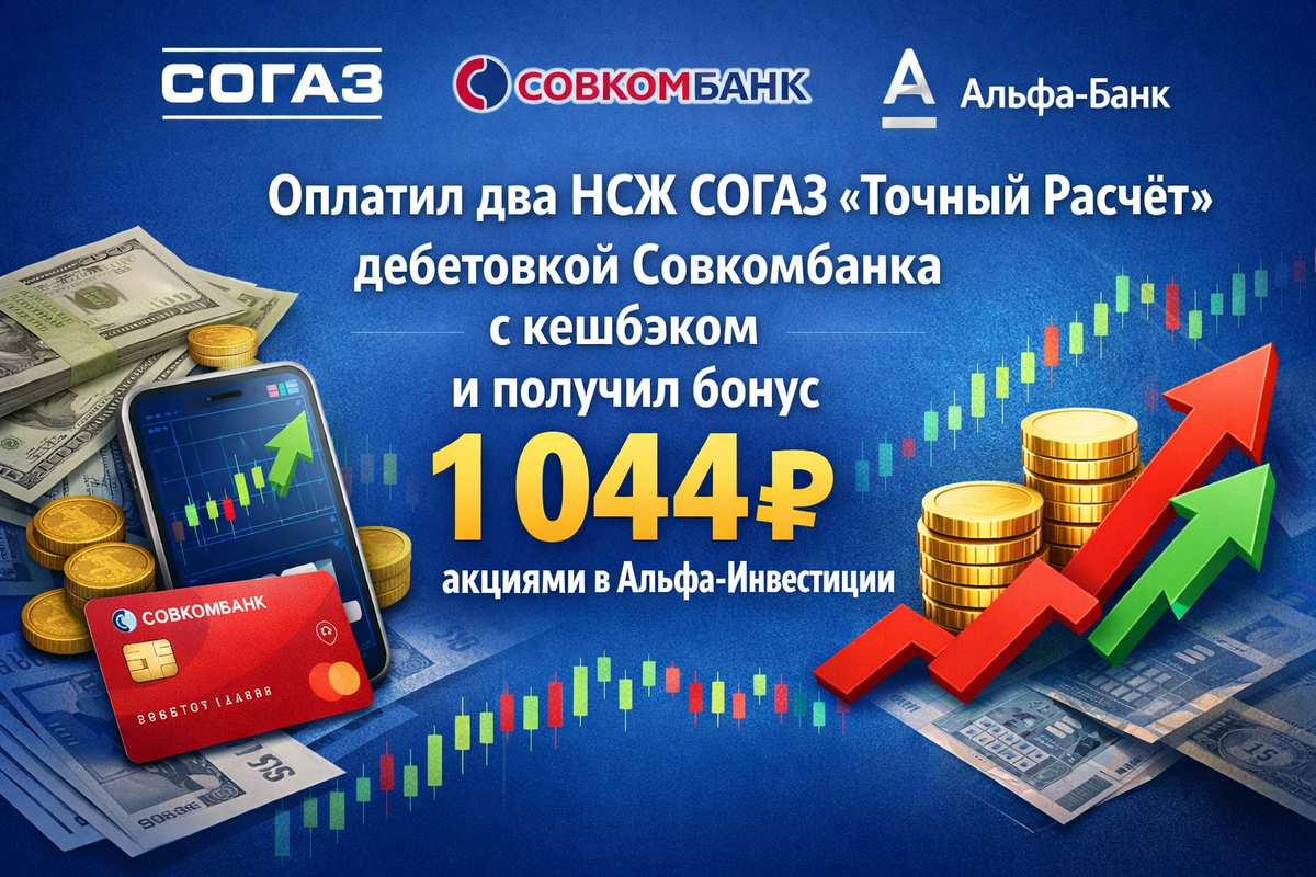 ✅ Оплатил два НСЖ «Точный Расчёт» по 100к₽ по номеру карты (МСС 8099) с доходностью до 25,56% годовых. Стремительно двигаюсь к блоку ПЛ в Совке😁 📱 В Совкомбанке приложение рисует 8 000₽ кешбэка – это баг, обычно выплачивают максимум 5 000₽, таков лимит программы лояльности. 🔢 Итого по двум картам можно получить +10 000₽ кешбэка 🏧 Всего по моей карте уже получено: +20 000₽ кешбэка ⚡️ Кешбэк на медицину в этом месяце: 🏦 Совкомбанк – 8% (уже 5-й месяц подряд) 💼 БКС – 3% ✅ ОТП – 2% 🐘 Сбер – 2% 🎁 Сегодня зашёл во второй аккаунт Альфа-Инвестиции и увидел бонус 1 044₽ акциями ММК, за игру «Экспедиция» ➕ Дополнительно: 🧭 Как выбрать страховую для НСЖ/ИСЖ: полный разбор
