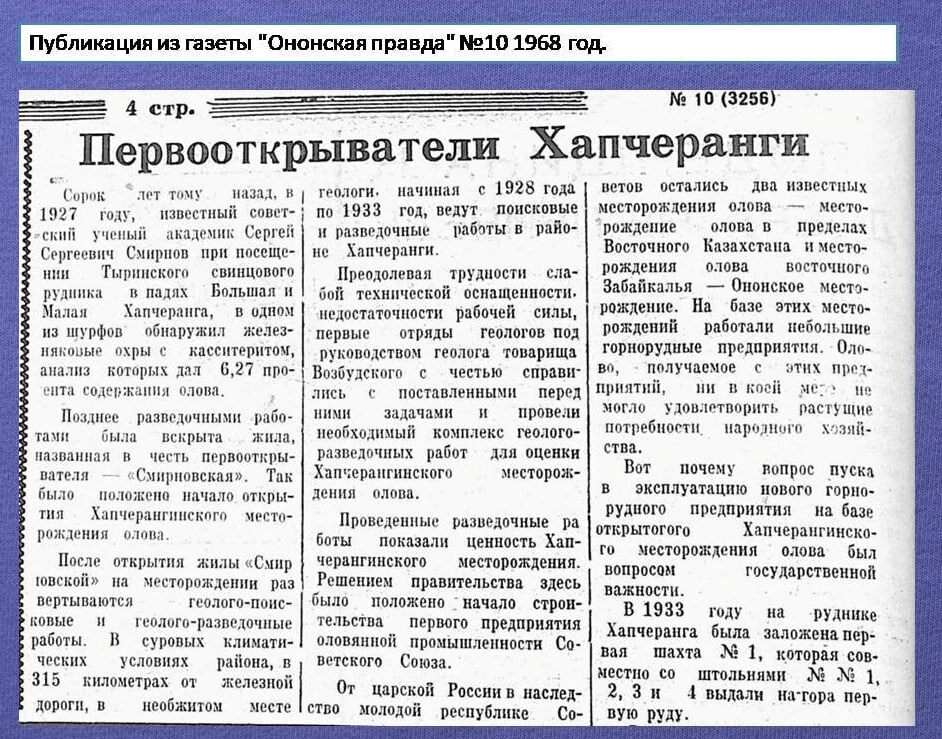 Привет, друзья! Сегодня хотим рассказать вам об интересной странице истории нашего края. В 1933 году была заложена первая шахта №1 — это событие стало началом масштабного геологического освоения Забайкальского края и имело огромное государственное значение! В газете «Ононская правда» в 1968 году вышла статья о первооткрывателях месторождения олова в Кыринском районе. В ней рассказывается о том, как формировался горно-обогатительный комбинат всесоюзного значения и возникал посёлок городского типа Хапчеранга. 😞 К сожалению, сегодня о тех временах почти никто не помнит. Посёлок, который когда-то был важным центром горнодобывающей промышленности, сейчас заброшен. Давайте не забывать о богатой истории нашего региона! Подписывайтесь на наши каналы и узнавайте больше о Забайкальском крае: 🔗 ТГ :🔗 VK : 🔗 МАХ: 🔗 Дзен: 🔗 OK : 🔗 Чат :