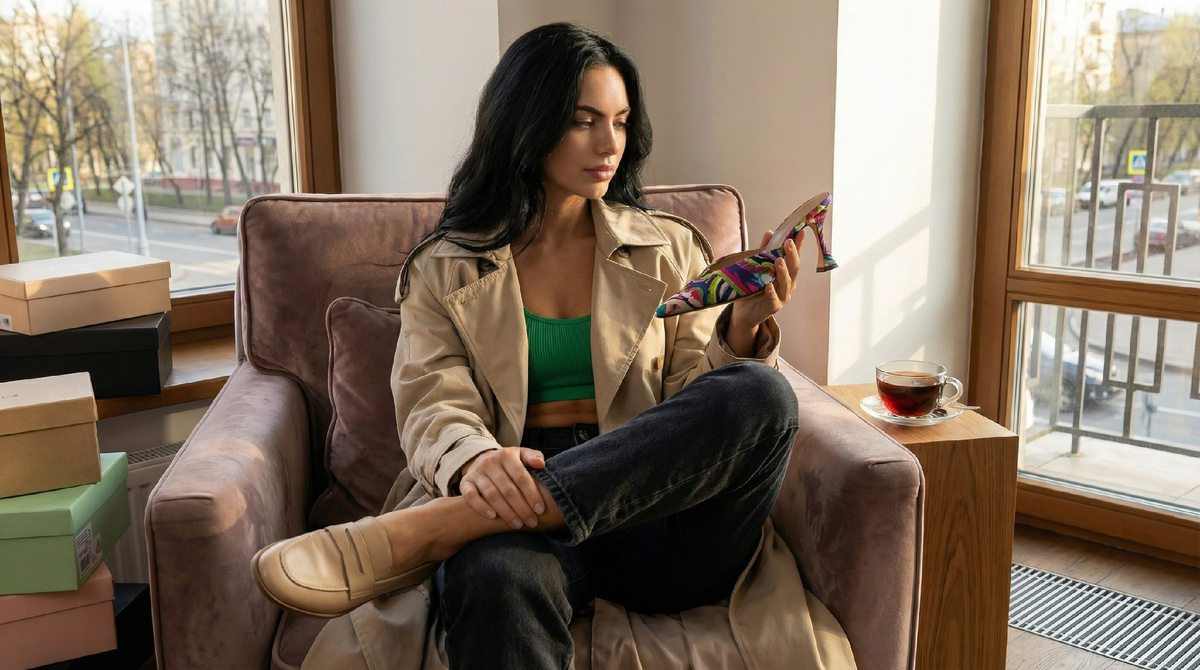 Весенняя обувь, которую носят все, сама по себе не плоха. Просто когда её носят все — она перестаёт работать как деталь, которая делает образ живым. Небольшая замена в форме или оттенке — и это снова работает.