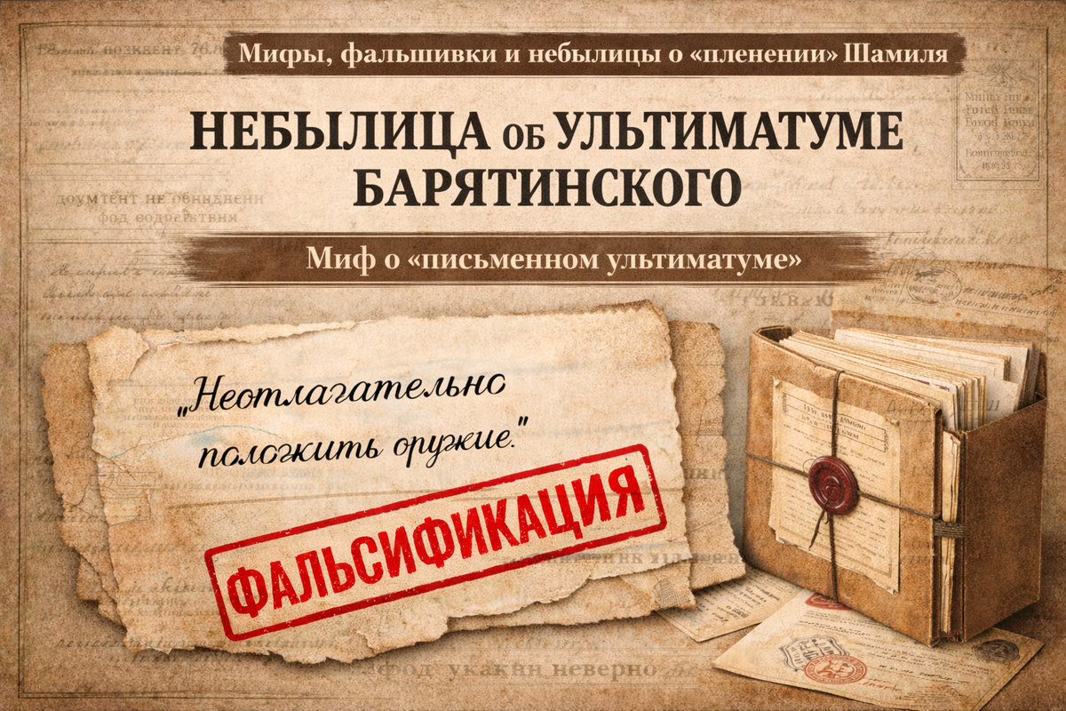 «Письменный ультиматум» Барятинского Шамилю – лжеисторический документ