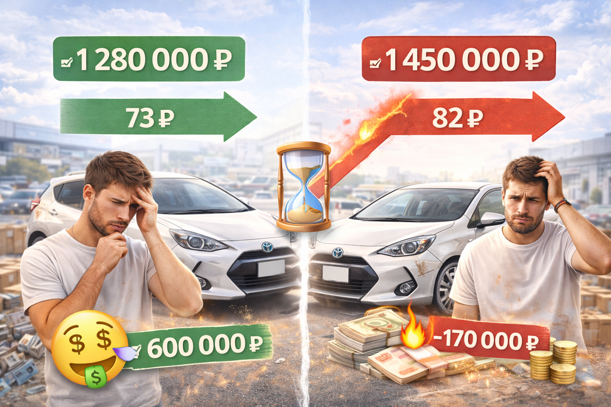 Парень думал, что всё посчитал, но по факту чуть не попал на деньги из-за одной мелочи. И самое интересное, что история вообще не про машину. Был клиент, искал себе Toyota Aqua в бюджете около 1.3 млн рублей. Нашёл вариант: оценка 4, небольшой пробег, цена на аукционе адекватная, всё выглядит нормально. Мы ему посчитали машину под ключ — вышло около 1.28 млн рублей. Он посмотрел и говорит: «норм, давайте брать». Но потом решил немного подождать. Логика простая: может, ещё вариант появится получше, а может, получится чуть дешевле поймать. На этом месте многие думают, что ничего страшного не произойдёт. Ну подождёт человек неделю-другую, что изменится. Но в автоимпорте всё завязано не только на саму машину, а ещё и на курс. И пока он думал, курс начал понемногу расти. Через 2–3 недели вернулись к тем же вариантам. Машины того же уровня на аукционах остались, ничего глобально не поменялось, но итоговая цена под ключ уже была другой. Не 1.28 млн, а почти 1.45 млн рублей. Разница получилас
