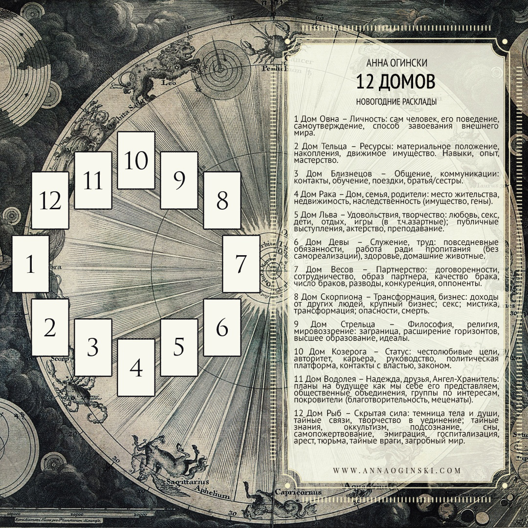 #таро #12домов #обучениетаро «12 домов»: самый подробный расклад в Таро, о котором вы могли не знать Если вы когда-нибудь хотели сделать один расклад и получить ответы сразу на всё — про работу, деньги, отношения, здоровье, — то расклад «12 домов» создан для вас. Но многие тарологи боятся к нему подходить. Почему? Потому что 12 карт — это страшно. А если ещё и связать их между собой… голова идёт кругом. Сегодня я расскажу, как устроен этот расклад и почему он не такой сложный, как кажется. Что такое «12 домов» Расклад пришёл в Таро из астрологии. Представьте, что ваша жизнь — это круг, разделённый на 12 секторов. Каждый сектор (дом) отвечает за свою сферу: 1 дом — вы сами, ваша внешность, маска