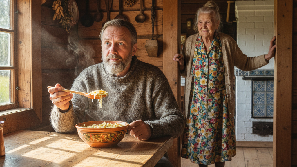 Хозяйку звали Анна Петровна — 78 лет, бывшая учительница музыки, до сих пор играет на старом пианино в кладовке, пока варит варенье из шиповника. Увидев финна у ворот, она поставила ему на стол тарелку щей и сказала: «Садись. Потом поговорим».