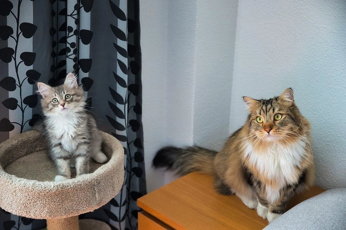 Котята и молодые сибиряки —это вихрь энергии. Прыгают, носятся, охотятся за каждой движущейся тенью.