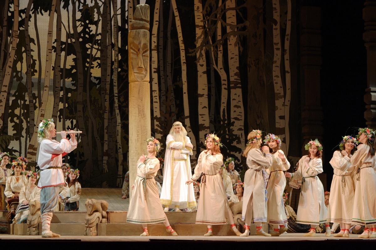УРОК №30. Завершение знакомства с весенней сказкой «Снегурочка». Дорогие друзья, сегодня мы завершаем знакомство со сказкой «Снегурочка». www.уроки-музыки.рф СЛАЙД 1. В начале третьего действия по замыслу автора сцена должна выглядеть так: «Молодые берендеи водят круги; один круг ближе к зрителям, другой поодаль. Девушки и парни в венках. Старики и старухи кучками сидят под кустами и угощаются брагой и пряниками». Если вы откроете текст пьесы, то увидите, что действие начинается со слов «Ай, во поле липонька». П.И. Чайковский воспользовался этим текстом, процитировав в номере «Хоровод» подлинную народную песню (на видео с 1 часа 41 сек по 1 час 3 мин. 7 сек.). https://vkvideo.ru/video-46598842_456241681 СЛАЙД 2. А сейчас вас ждёт сюрприз… Через семь лет после появления пьесы А.Н. Островского к этой истории обратился Николай Андреевич Римский-Корсаков. Но он написал оперу «Снегурочка», с которой вы познакомитесь уже в старших классах, а пока посмотрите фрагмент хоровода в мультиплика