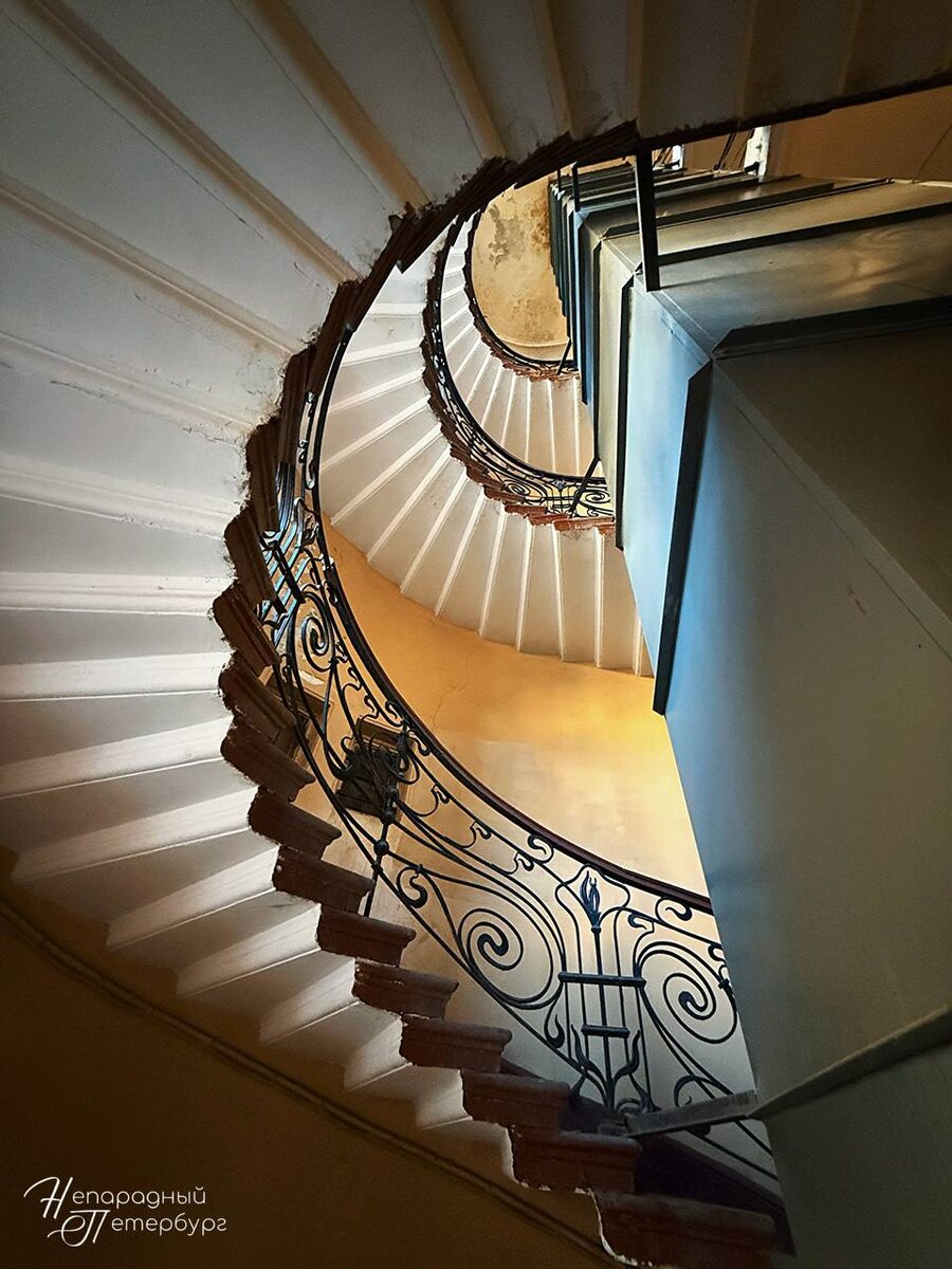 😱 Модернистское здание было построено в 1901-1902 годах для купца Г.А.Шульце по проекту архитектора Карла Шмидта – племянника Карла Фаберже. В парадной сохранились подлинные старинные двери, винтовая лестница с витиеватыми коваными перилами, на стенах также можно заметить световые окна, ведущие в квартиры. До революции в этом доме жили управляющий магазином Фаберже М.А.Гурье и ведущий медальер Монетного двора и один из авторов ордена Ленина – А.Ф.Васютинский. Вход в парадную возможен с жильцами дома. 📍Адрес – ул. Куйбышева, 22 #непарадныйпетербург @vladislavkarpyuk