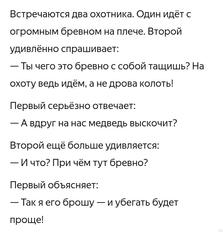Вспомнился тут анекдот про охотника и бревно.