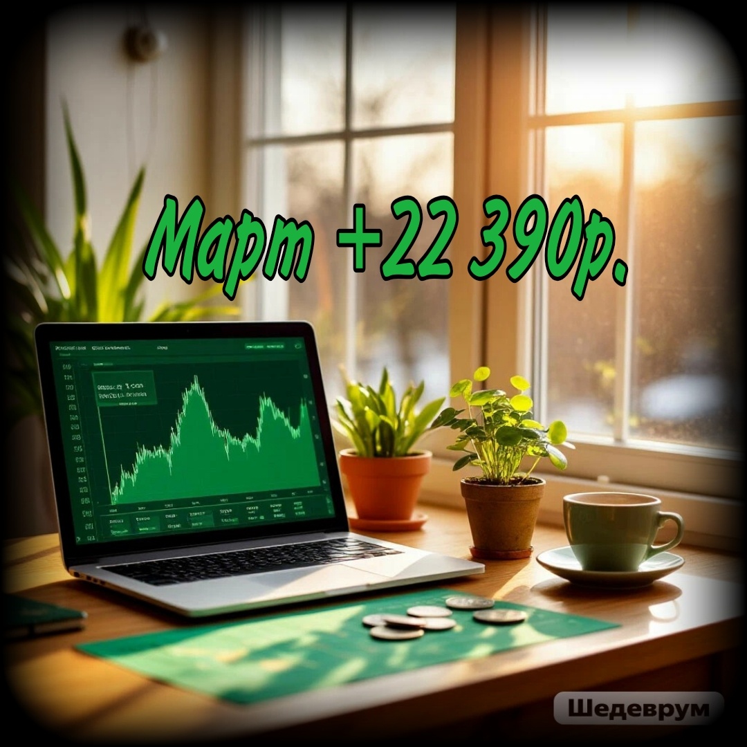 Для меня важно по итогу месяца не уйти в минус, даже если мой пенсионный портфель с учётом цен на активы похудел на -0,76%, то на общем фоне это и не так страшно. Суммарный доход за март составил +22 390 рублей, с учётом цен на все мои активы на фондовом рынке.