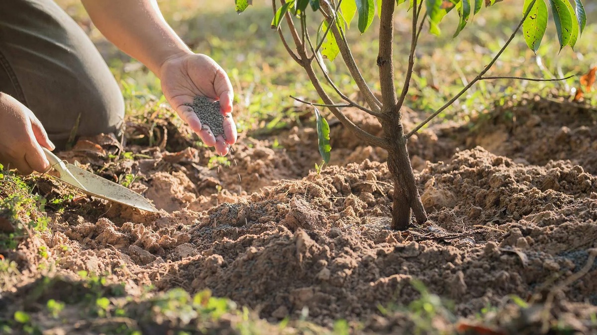 Не сыпьте удобрения в центр под ствол — там всасывающих корешков почти нет. Равномерно разбрасывайте по проекции кроны (где заканчиваются ветки) или чуть дальше. Заделайте граблями на 2-3 см в землю и обильно полейте.