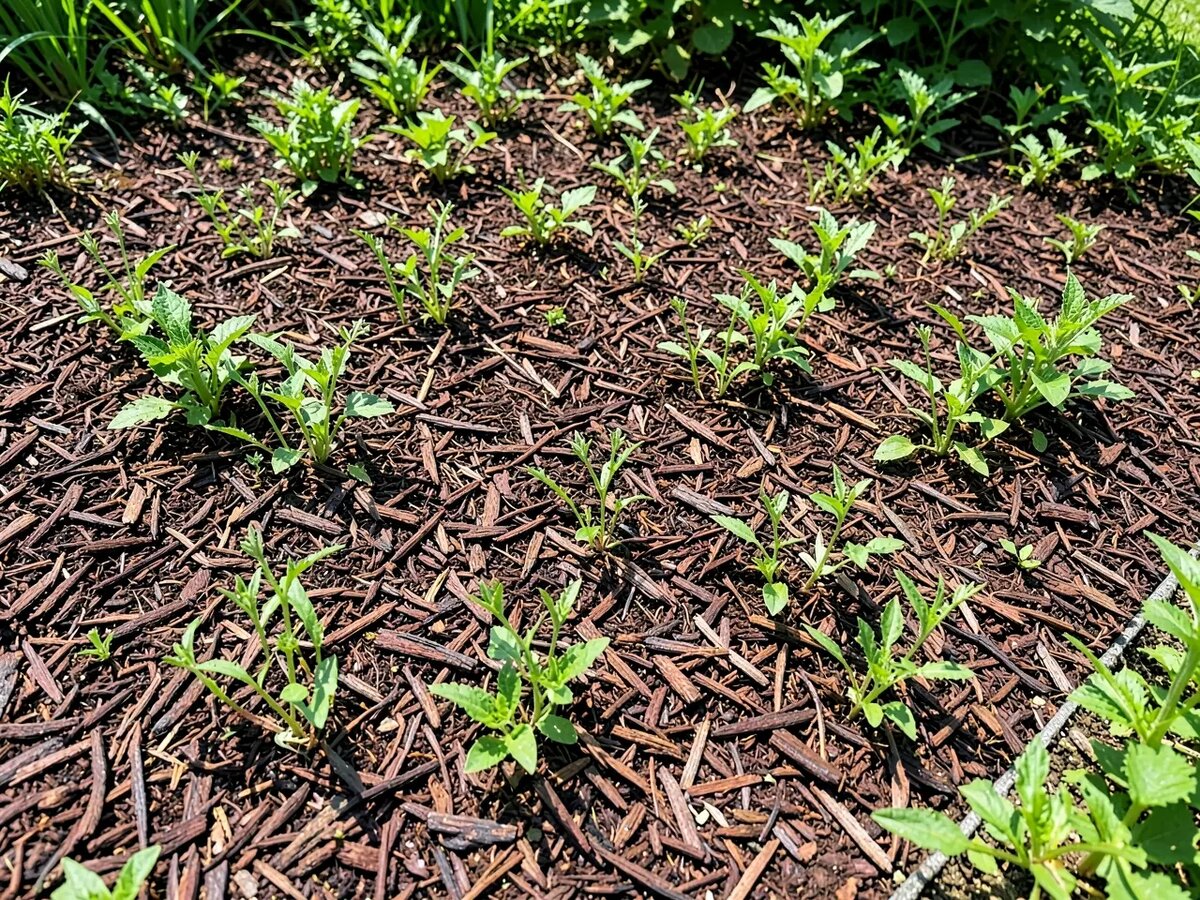 Бороться с сорняками становится в разы проще, когда солнечный свет не достигает поверхности земли. Семена лишаются стимула к прорастанию, а молодые побеги ослабевают без прямого освещения. Физическое препятствие не дает пробиться слабым росткам, поэтому ручная прополка сводится к минимуму. Кроме того, полностью исключается риск случайно задеть корни культурных растений мотыгой, а обработка грядок занимает существенно меньше времени.