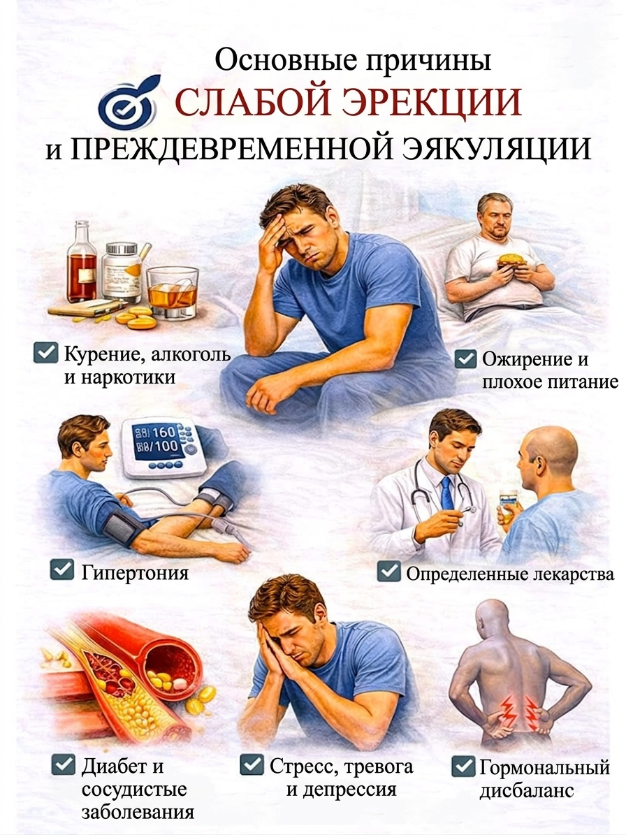 Большинство людей думают, что такие проблемы, как слабая эрекция или преждевременная эякуляция, имеют исключительно физиологический характер. Да — курение, плохое питание, гормоны и здоровье сосудов действительно имеют значение. Но есть один фактор, который часто упускают из виду 👇
